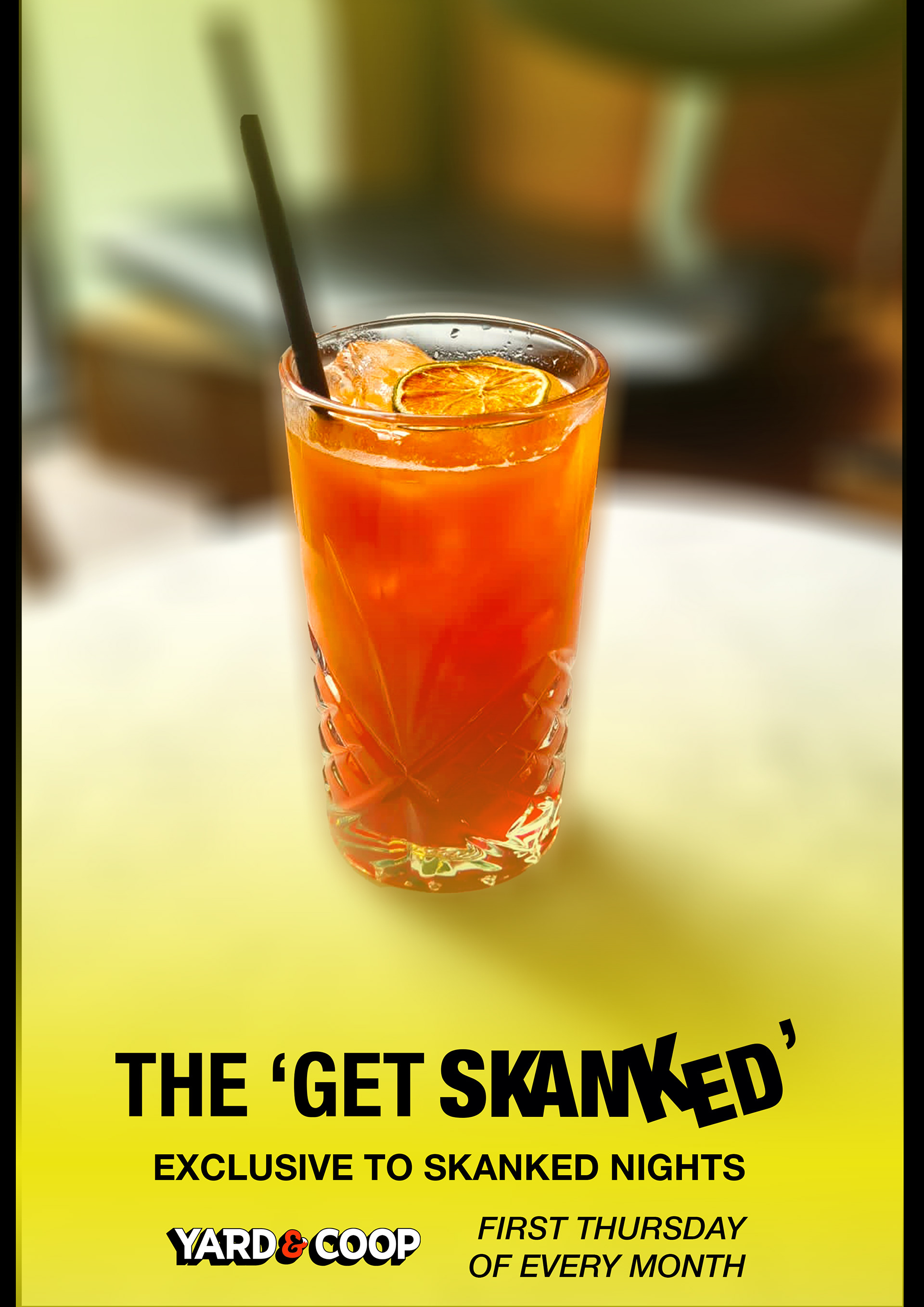 while working with skanked I helped with there marketing, below Is an example of a campaign I created and designed for them to help increase bar sales at their events. For this I worked with the venue to create a skanked cocktail which not only increased bar sales but added to the experience of attending a skanked event creating a memorable feature which makes the brand stand out compared to other events brands.